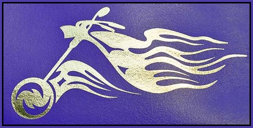 Below are my stock images that I presenly have. These images were stamped with a flat finish and metallic foil. The metallic foil looks killer but hard to photograph and capture the real beauty-richness These are magesium dies-images that I can stamp on any bag that they would fit on. These start out as a black and white line drawing and are converted to this die ( see picture below ). I can take any one of these images and custom build a bag for you and stamp-print it on the bag color of YOUR choice and foil-print color as well. We can also add some text above-below-to the left-to the right assuming we have the room to do it! We could stamp an image on one side and text on the other. Whatever you prefer! The most important thing to consider is space-space-space - size-size-size!